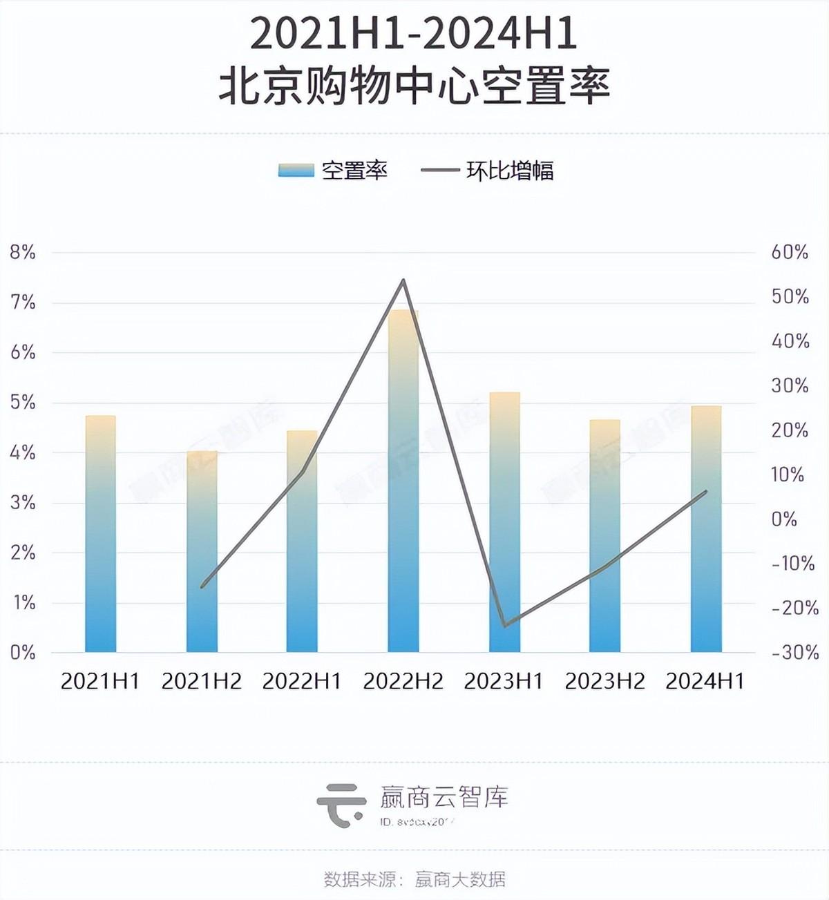 三里屯、朝青等传统商圈更新改造工程逐步深化,2024上半年北京购物中心空置率环比抬升6%左右,但仍为一线城市最低值。其中,市级商圈购物中心空置率为4.73%,区域商圈购物中心空置率为5.53%。