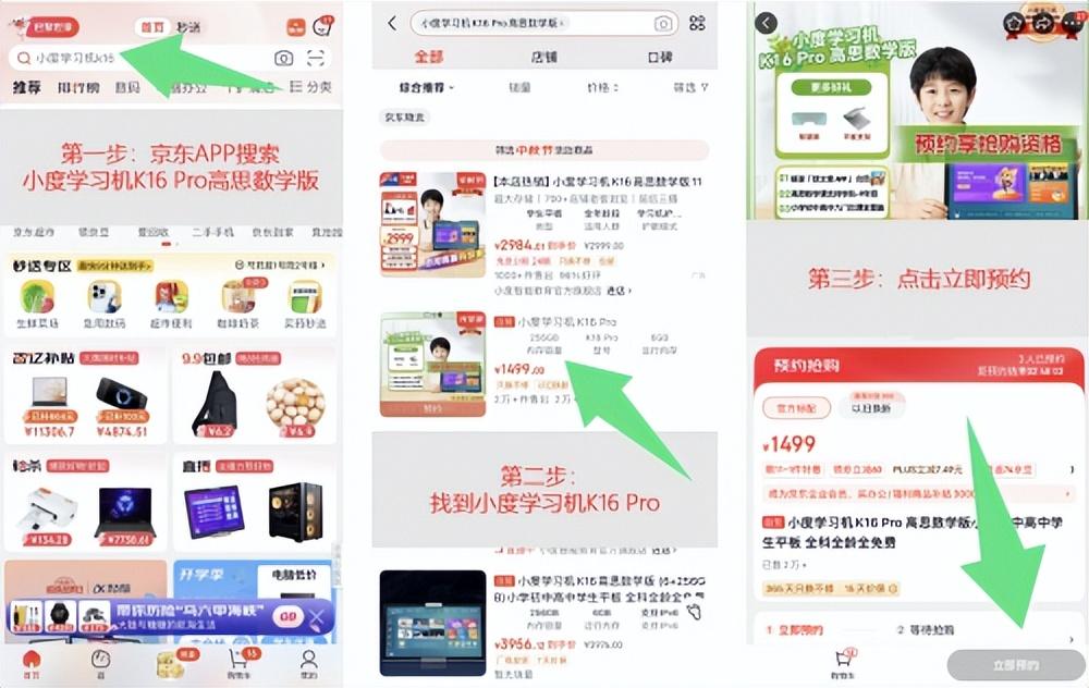 如果你也想以1499元的价格入手小度学习机K16 Pro高思数学版,记得现在来京东参与预约,每天晚上8点准时开抢。