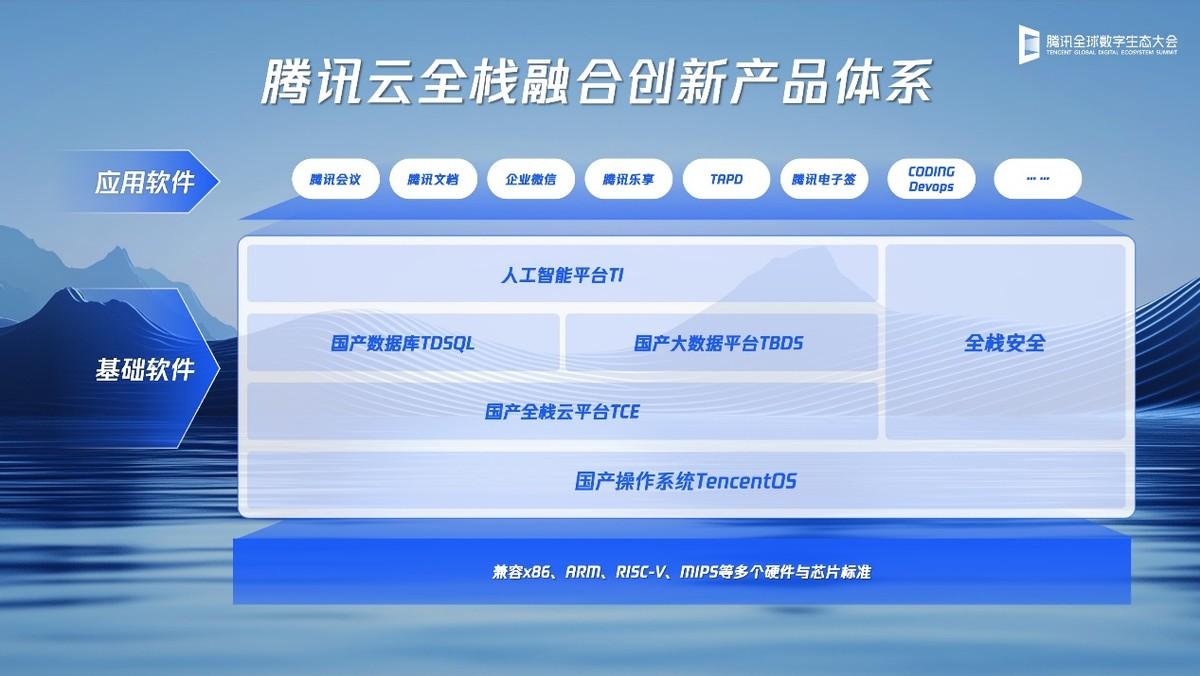 腾讯云在大会上公布了完整的融合创新产品体系,助力产业转型升级。在基础软件领域,数据库TDSQL、操作系统TencentOS、专有云TCE、大数据TBDS、人工智能开发平台TI等核心产品(简称“5T”),兼容国内主流的芯片厂商,在多个大规模的集群上稳定运行,落地覆盖金融、交通、政务、互联网、医疗、传媒等多个行业,积累了丰富的融合创新实践。