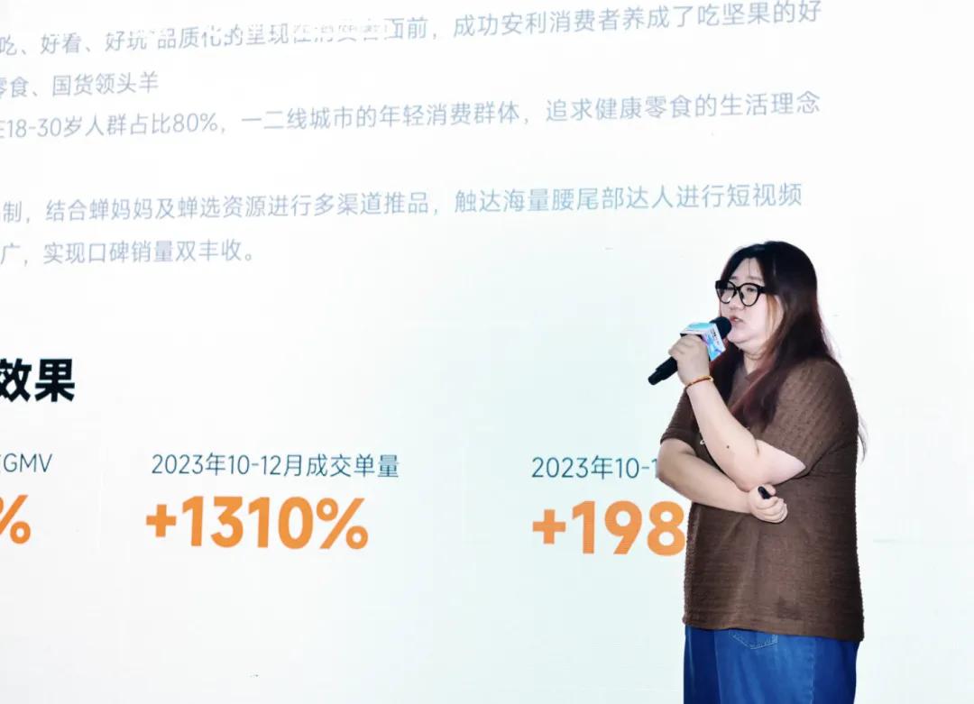服务猫人、鸭鸭、美力城等品牌,借力AIGC、全域经营等产品赋能客户,帮助众多客户实现生意增长李梦柠以「新场域新玩法!全域营销激发生意新可能」为主题,解读了抖音电商的发展趋势,并分享了她对当前抖音商家如何实现全域增长的看法。