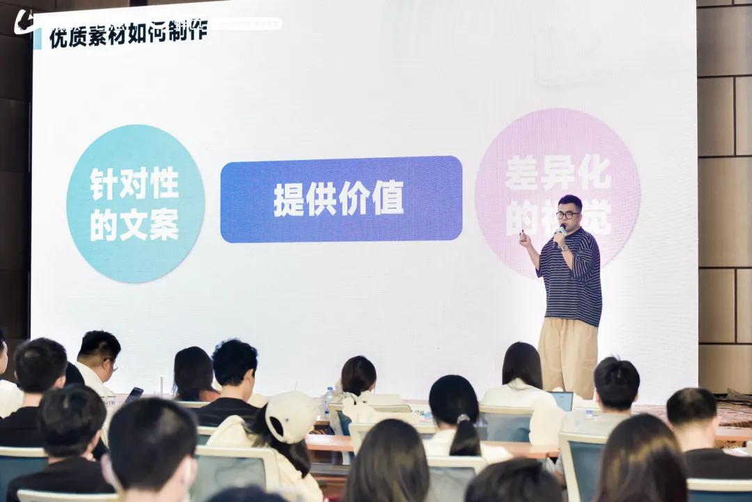 吕枭龙以「小创意驱动大增长」为主题,分享在当前电商环境下,如何使用工具获取素材创意,用内容实现爆量。