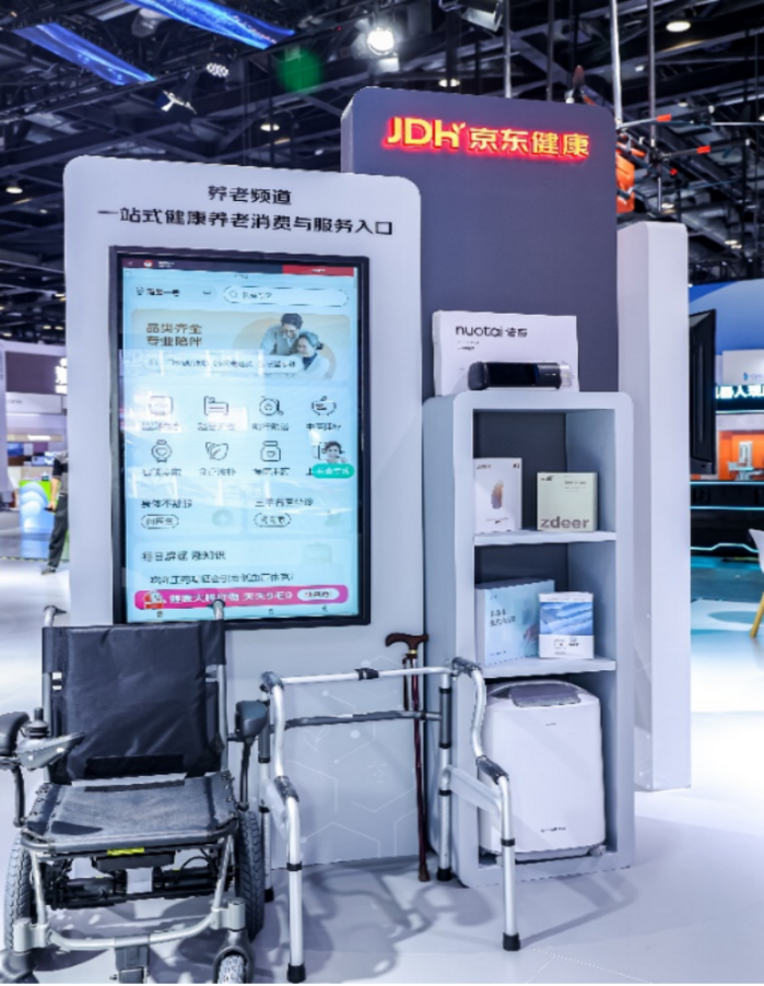 时下,随着老年人口数量的增加和消费能力的提升,健康养老消费展现出巨大的增长潜力。会议现场,京东健康展示了今年全新上线的健康养老频道,以及起居护理、助行助浴等养老趋势产品,引发众多参观者驻足体验。目前,京东健康适老品类已涵盖超过3万家品牌和上千个细分类目,并构筑了专业的适老服务体系,由长辈专属客服团队7×24小时在线,为老年人提供贴心、便捷的购物体验。