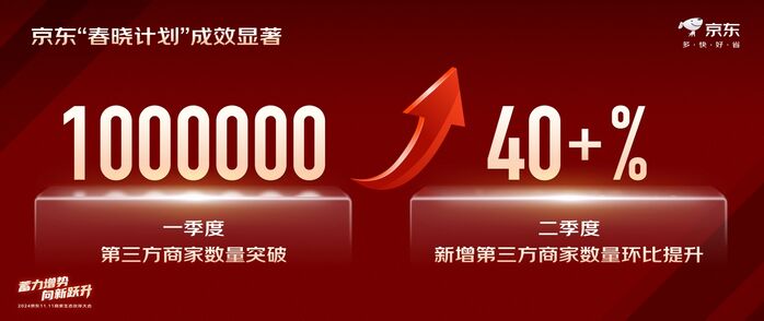 越来越多的商家被“春晓计划”、以及京东带来的生意增长确定性所吸引,从京东披露的财报数据可以看出,截至今年3月,京东第三方商家数量已经突破百万。今年二季度,京东第三方商家数量环比一季度增长超过40%。