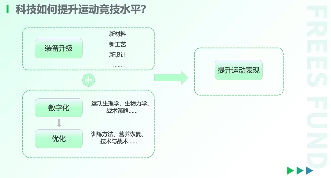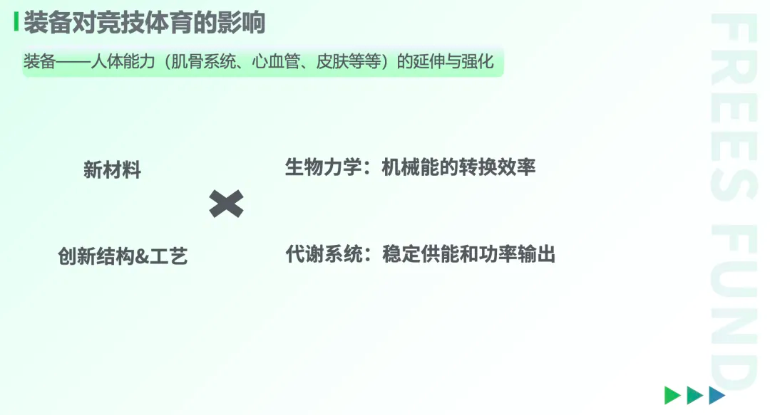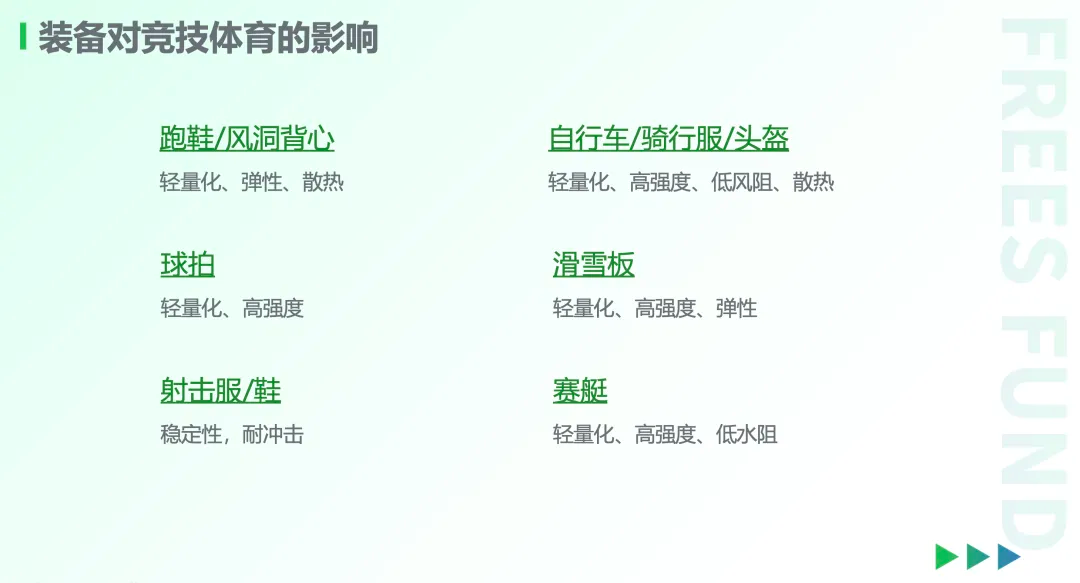 这些科技的应用推动了运动装备的升级,提升了运动员的竞技水平,不断将人类的运动能力推向新的高度。我们相信这些技术也将逐渐应用于大众运动和健身领域,打开更广阔的市场。