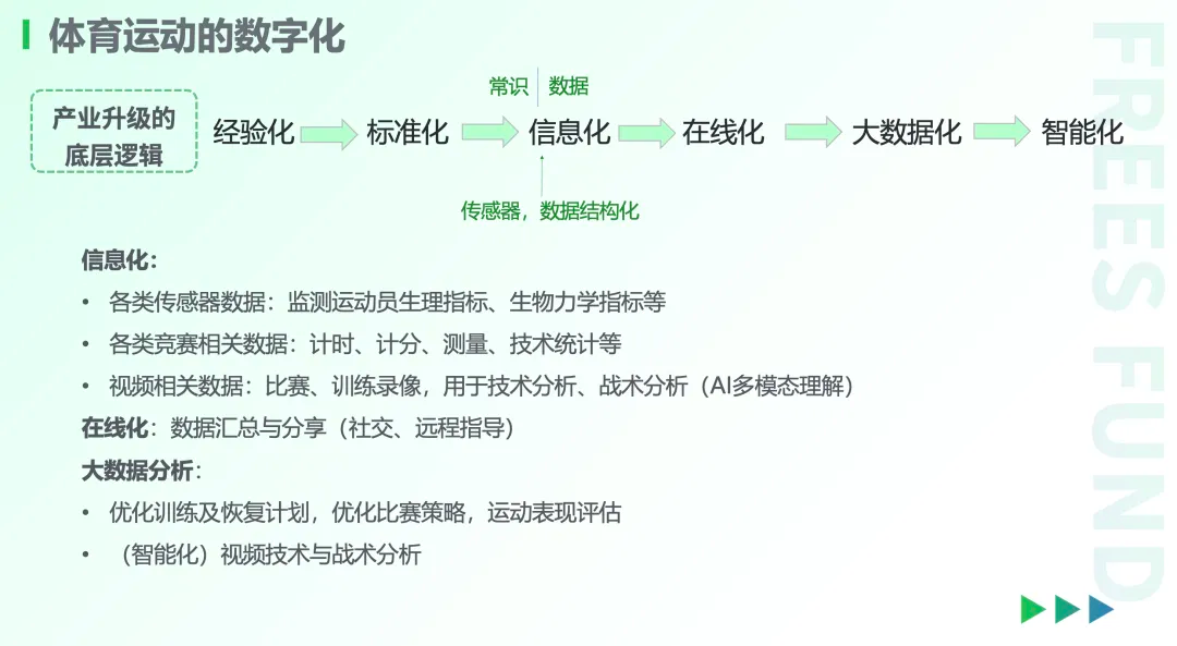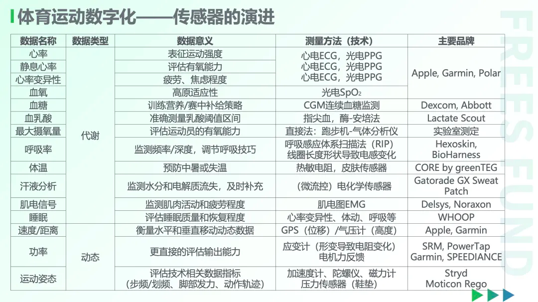 以传感器的演进为例,各类传感器的应用,使得运动员各类指标的数字化得以真正实现。