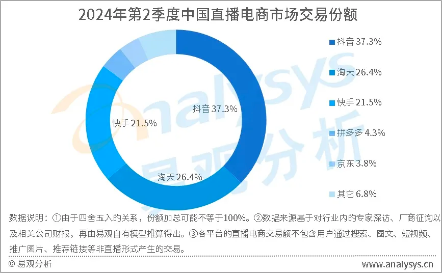 易观数据显示,2024年第二季度中国直播电商市场交易规模为10604亿元,同比上涨12.6%,但增速相比前几年明显放缓,无疑迎来了拐点。