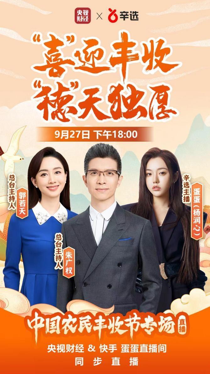 9月27日,为庆祝第七个中国农民丰收节,辛选主播杨润心(网名蛋蛋)携手中央广播电视总台主持人朱广权、郭若天等走进四川凉山彝族自治州喜德县,开启了中国农民丰收节专场公益直播带货活动,全场GMV超1.2亿元,助力285万单全国各地特产“出山”。