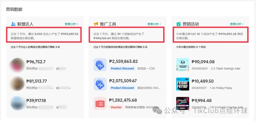 商家可以根据不同销售阶段,设定不同的优惠活动吸引消费者下单。比如投流品一口价、固定折扣以及新客优惠券等。在过去七天内,通过39个促销活动产生了49万比索的GMV。
