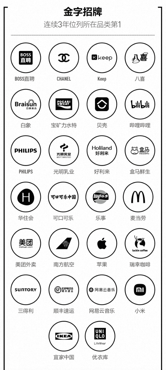 图:连续三年位列“金字招牌”第一的品牌榜单