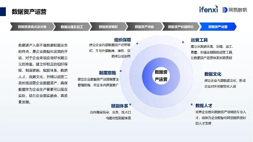 企业数据资产入表不是数据赋能业务的终点,它是开始。还要通过长期有效的机制保障数据资产的质量,比如数据价值、稳定性,要建立相应组织制度、人才体系相关文化,全链路的数据运营工具去支撑,保证长期有效的运营。长期运营是企业未来构建数据资产入表,构建自身数据资产价值的核心内容。