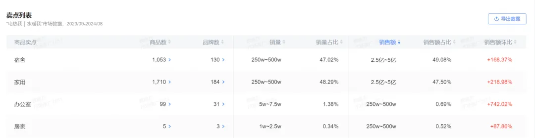 而在场景卖点上,学生宿舍是近年来品牌商家一直在拓展的新场景,市场规模最大,已经超过2.5亿元,销售额环比增长168%。