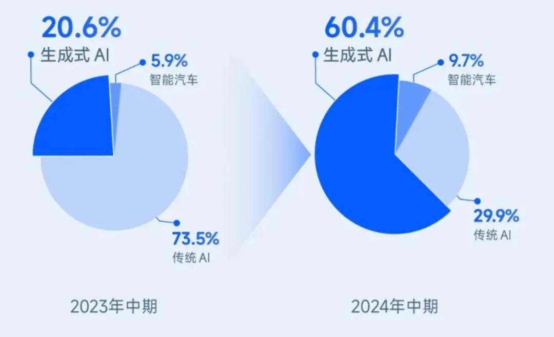 从业务构成来看,曾经包括三大业务的传统业务经过合并计算,收入下滑明显:2024年上半年财报显示,传统AI 收入为5.2亿元,同比下降50.6%。