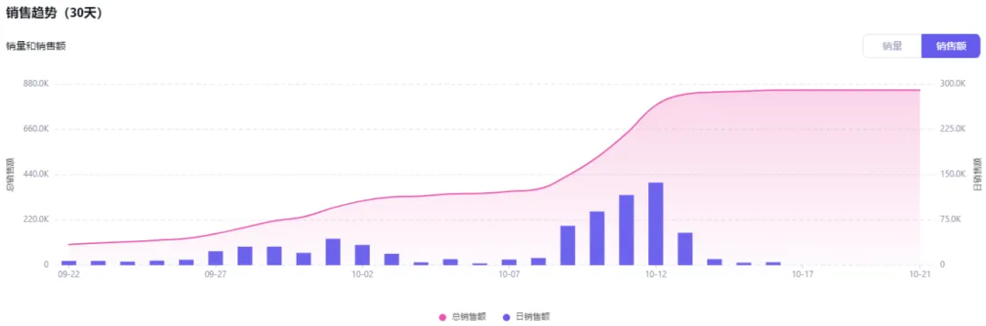近几日该款产品销量迅速上升,10月10日售1300单,10.11日售1700单。截至目前,该产品已经售出1.03万单,累计销售额近86万美金。
