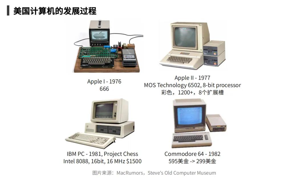 回顾了PC行业早期蓬勃发展的十年,我们可以总结出其发展脉络上的四大要素:芯片、系统、应用、终端。