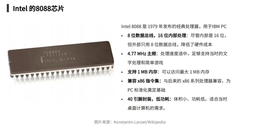 IBM PC最早采用的Intel的8088芯片就是个典型例子。8088相比前代 8086在总线位数上做了调整,成本因此得以下降,这也让它成了IBM PC 的核心芯片。