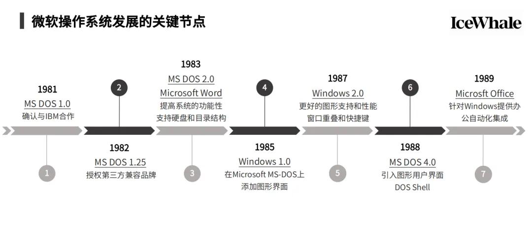从80年代至90年代,微软经历了一些关键的发展节点。