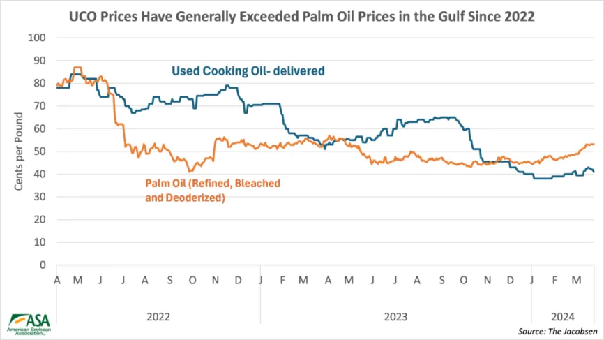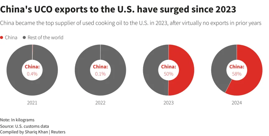 2023年,美国从中国进口了71.8万吨地沟油。2024年再次猛增,仅上半年,就超过60万吨。
