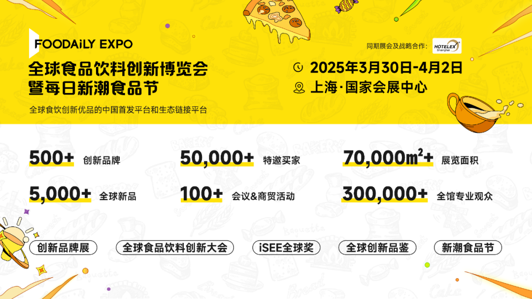 随着直播的结束,Foodaily每日食品也向观众发出了诚挚邀请,邀请大家明年3月参加由Foodaily倾力打造的Foodaily全球食品饮料创新博览会。届时,将有500多行业标杆品牌、5万多特邀买家以及30万+业内全链路资源汇聚一堂,共同推动食品产业的创新与发展。另外,第七届iSEE全球奖年度盛典暨颁奖典礼也将同期举办,一起向行业、向消费者、向世界展示创新与美味!