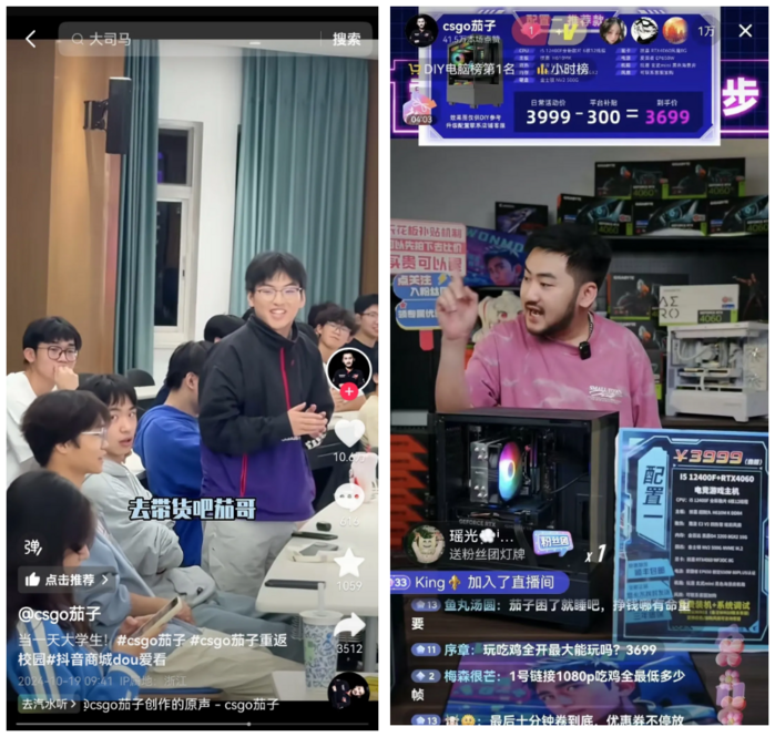 而这一次,他成为抖音电商双11 3C数码领域的“黑马”。在粉丝炽热的回忆推动下,@csgo茄子 回到大学这一话题在抖音上引爆,直冲热搜榜前列。在笑声中,不少人涌入直播间,买下一件件让人心动不已的产品。亿邦动力了解到,10月19日@csgo茄子 直播带货3C产品,GMV达到千万,突破达人自身历史记录。