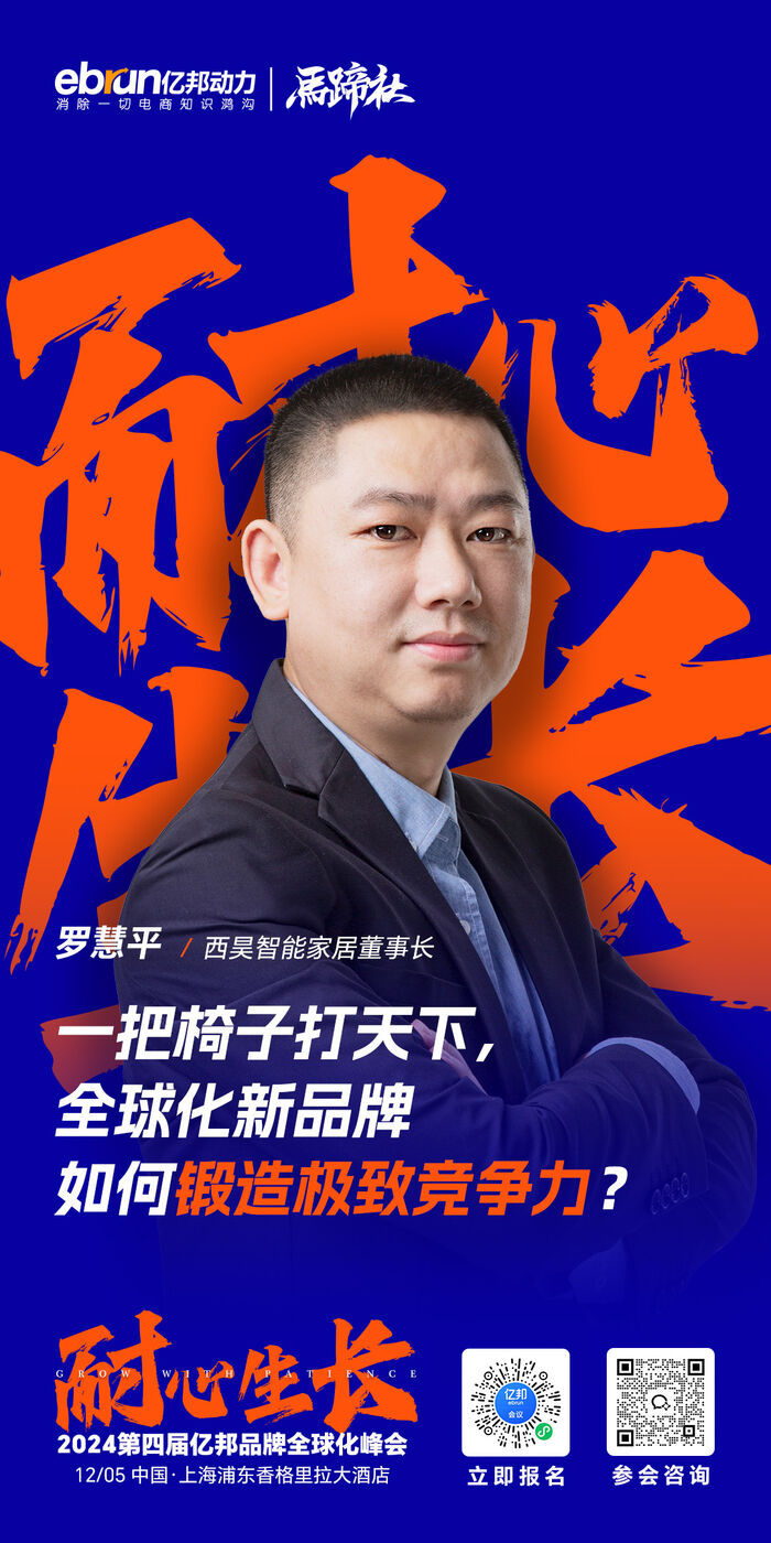 12月5日,西昊智能家居董事长罗慧平先生将受邀出席2024第四届亿邦品牌全球化峰会,并进行现场分享。