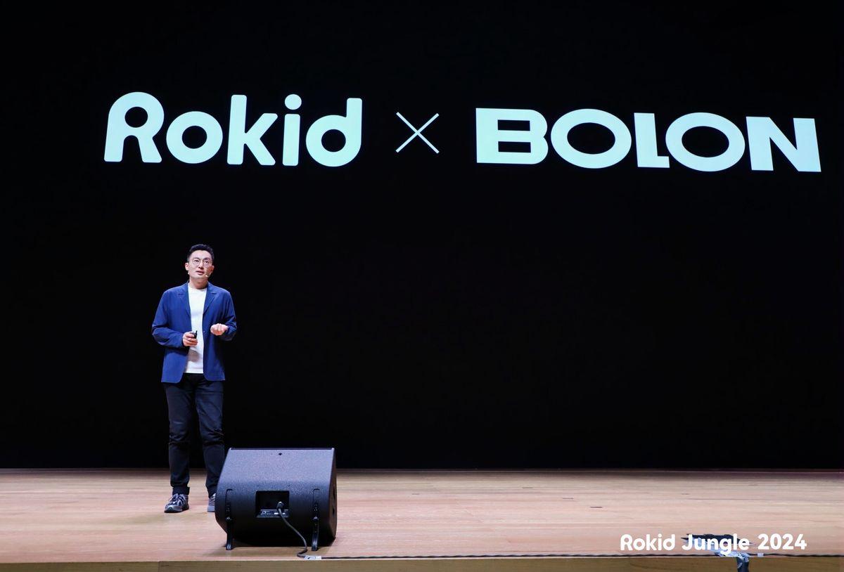 2024年11月18日 ,Rokid Jungle 2024 合作伙伴暨新品发布会在杭州举行。此次发布会 Rokid 推出一款与BOLON眼镜联名的新一代 AI + AR 眼镜—— Rokid Glasses,同时也向行业展示其丰富的内容生态。