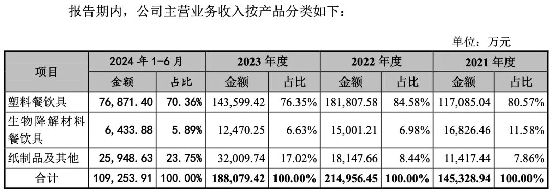 招股书显示,富岭目前主要生产塑料餐饮具、生物降解材料餐饮具、纸制品及其他。