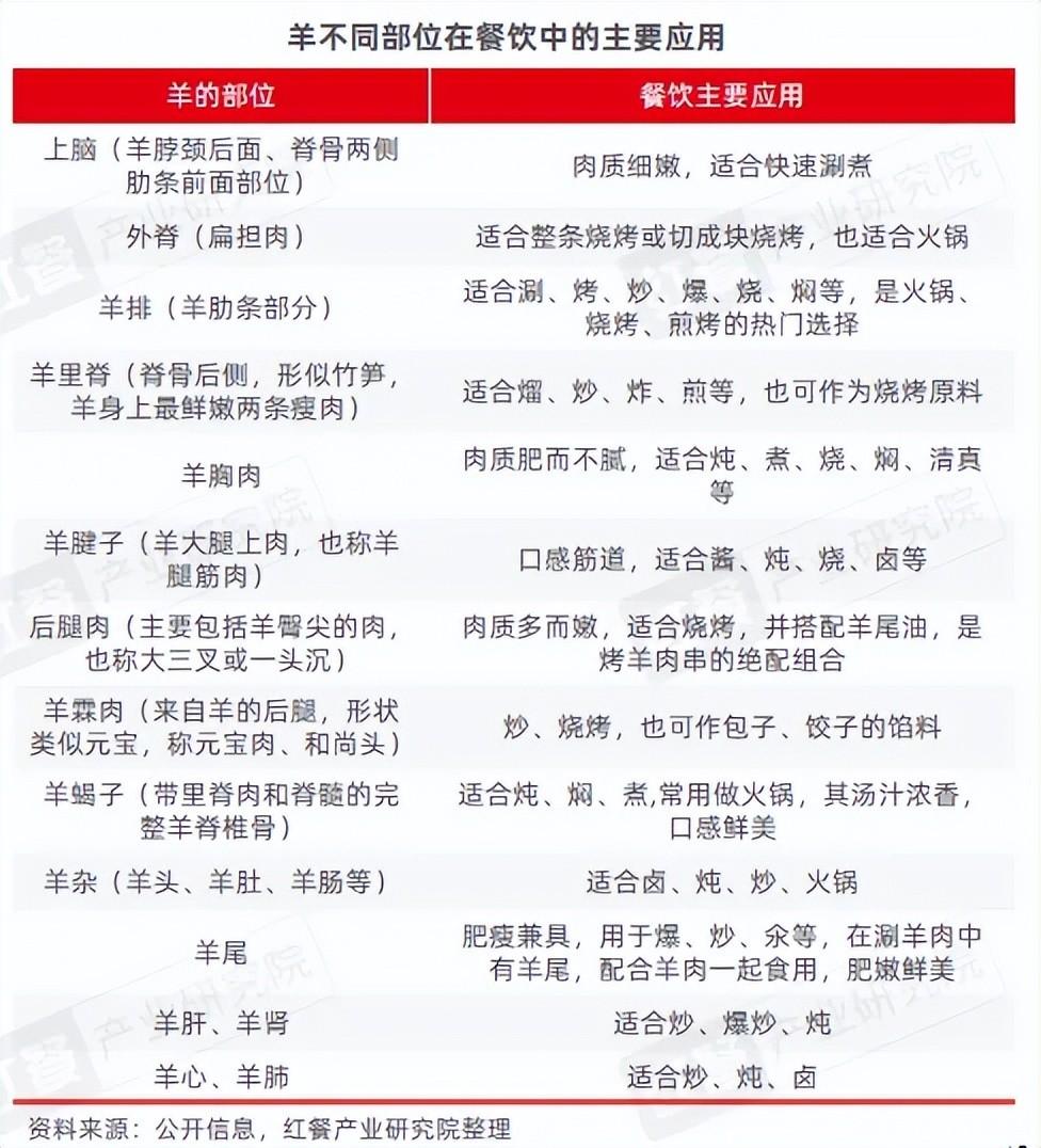 羊肉在餐饮中的应用场景广泛,包括涮、烤、包等多种形式,是火锅品牌、烧烤品牌以及大部分中式正餐品牌重要的食材。