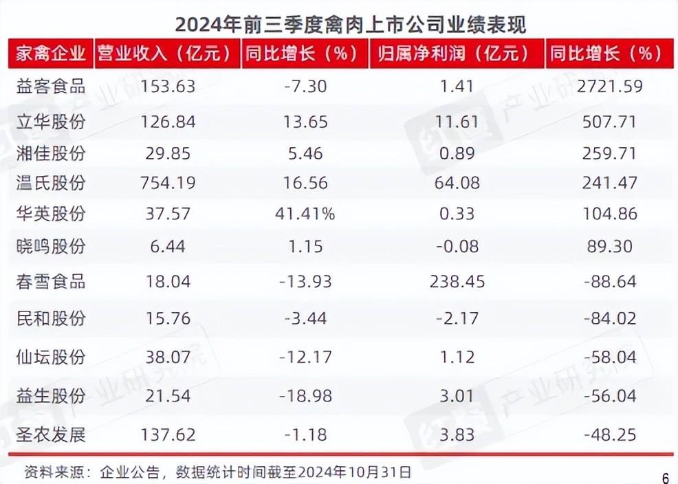 此外,立华股份和华英农业也实现了显著的业绩增长。立华股份前三季度实现净利润11.61亿元,同比增长507.71%;华英农业(种鸭养殖、屠宰加工、冻品、熟食、羽绒生产和销售)收入和利润增幅较大。