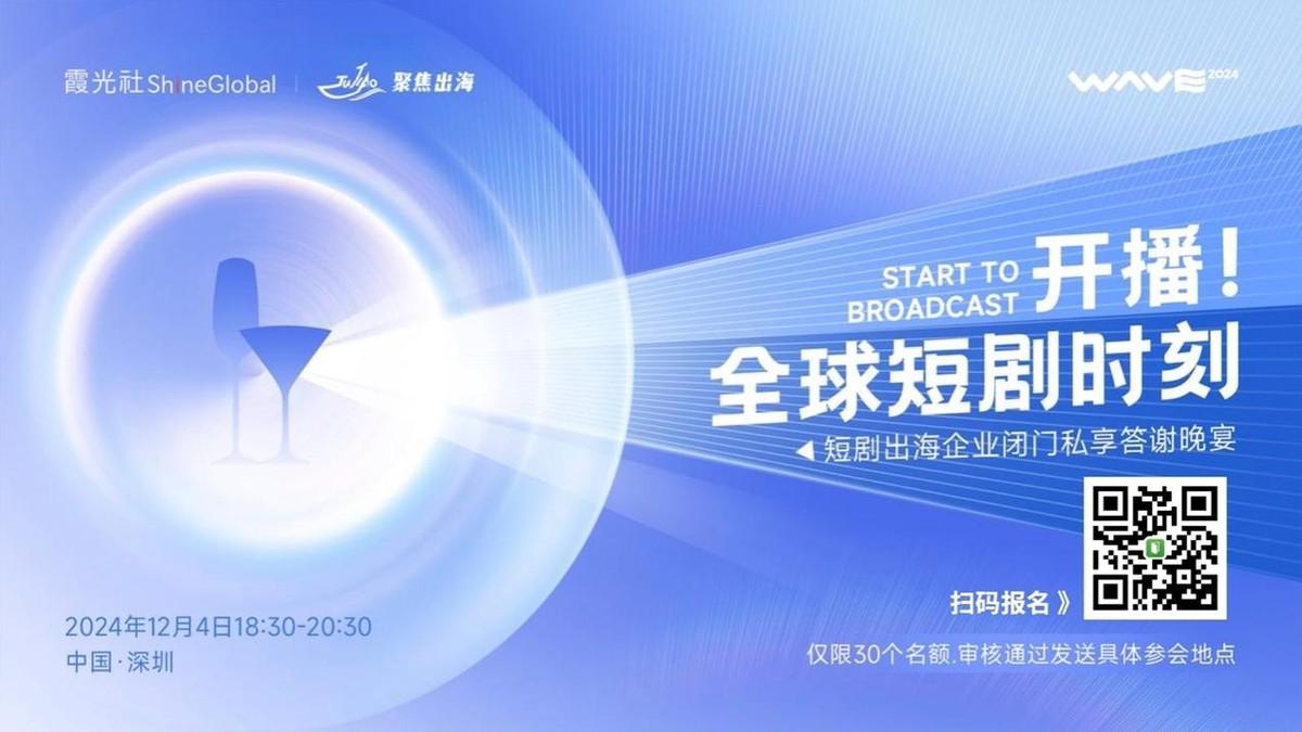 短剧出海正在成为一股不可忽视的力量。12月4日 18:30-20:30,我们为短剧领域从业者们准备了一场闭门晚宴。在这里,您可以与知名短剧平台、导演、创作者等产业上下游专家面对面交流,探讨短剧出海的趋势与机遇,结识志同道合的伙伴,了解短剧行业的爆款新趋势。