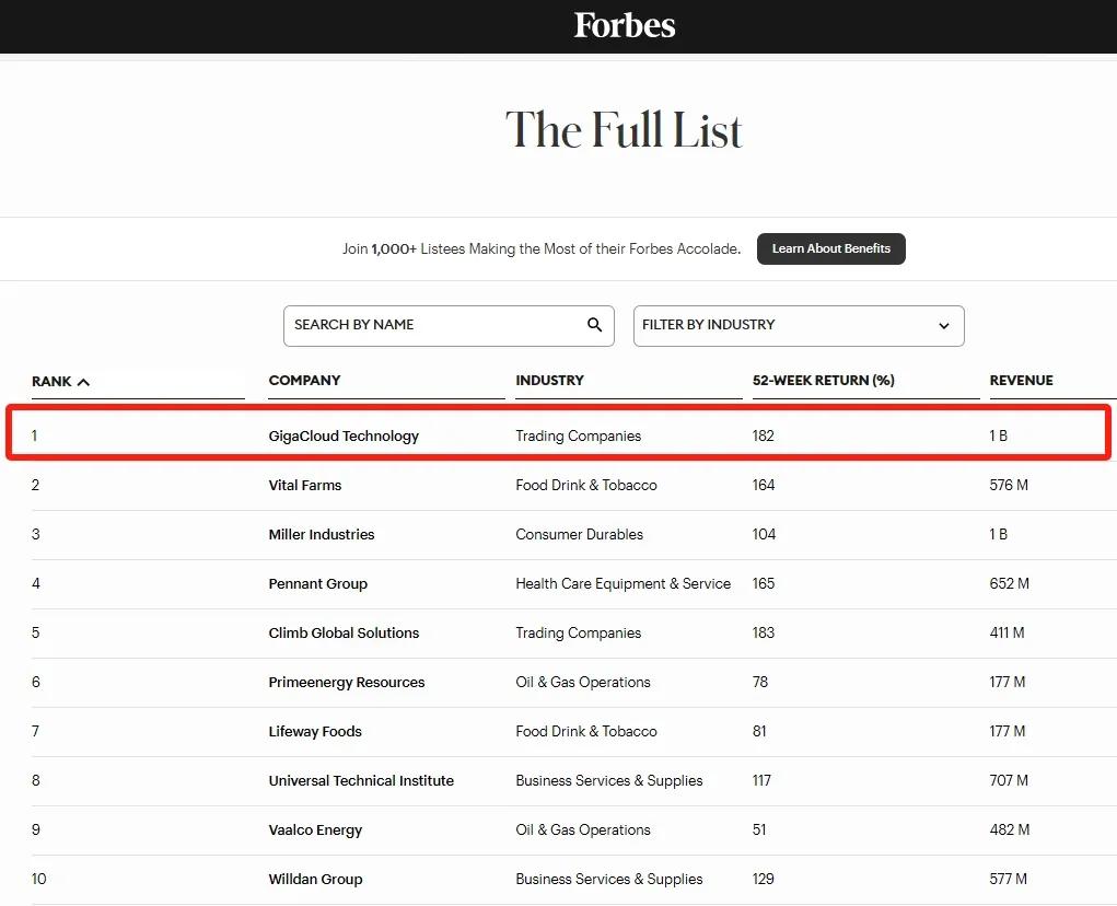 《福布斯(Forbes)》是极具全球影响力的商业杂志。近期,《福布斯》发布本年度“全美最成功中小市值公司排行榜”,大健云仓(Nasdaq:GCT)荣登榜首。
