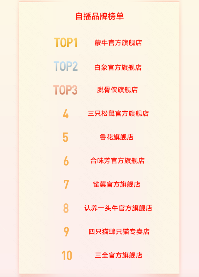 整个双11期间,品牌白象双11自播GMV超700万,同比增长超120%;品牌鲁花双11自播GMV超300万,同比增长超120%。