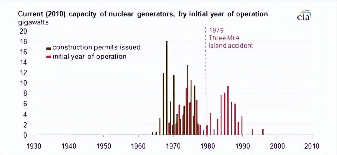 根据美国能源信息署的数据,从1979年到1988年,先后有计划中的67个核反应堆建设项目被取消。去年7月,美国佐治亚州的沃格特勒核电站3号机组正式并网发电,这是美国30多年来新建的第一座核电机组,也是7年来首个并网发电的核电机组。