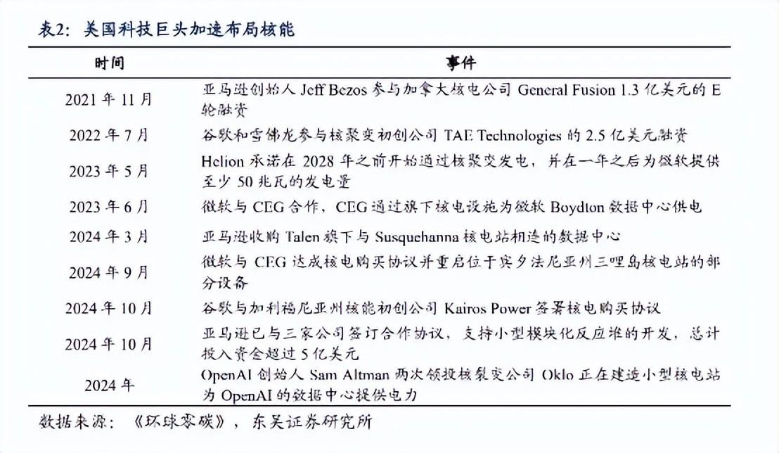 图:美国科技巨头加速布局核能 图源:东吴证券