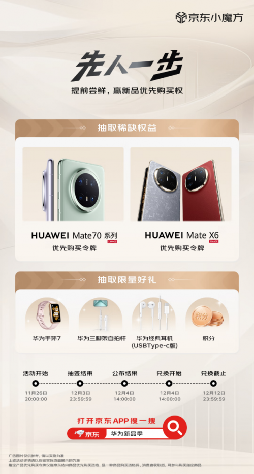 想要入手华为Mate 70系列和华为Mate X6系列就快来京东参与预售、抽优先购买权吧。
