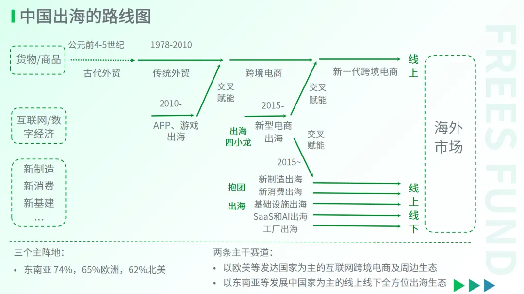 在当前全球化趋缓的大背景下,尽管面临多方管制和压力,中国企业仍积极推进全球化进程,并呈现出“抱团出海”的特点。AI应用与其他出海企业的紧密协作和“交叉赋能”将成为重要策略。目前中国的出海企业不仅涵盖传统货物和商品,还包括新型电商平台(如TikTok Shop、Temu等)、新制造、新消费、基础设施和工厂等多个领域。通过协同合作,中国企业可以实现资源共享和互利共赢。