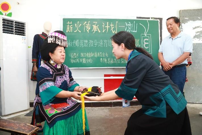 这一创新模式不仅推动非遗文化从“走进校园”向更加深入的“扎根校园”转变,同时也为民族文化的保护与发展提供了新的动力。据花西子公益团队介绍,目前,“在校老师非遗教学培育计划”已在凉山42所学校招募了23名老师作为首批培育对象。项目组将为其提供相关培训和学习机会,并携手本地传承人师傅,一对一帮助老师提升非遗技艺水平。“希望通过“非遗传承人+学校老师”的创新模式,让更多在校老师成为非遗文化传承的力量。”