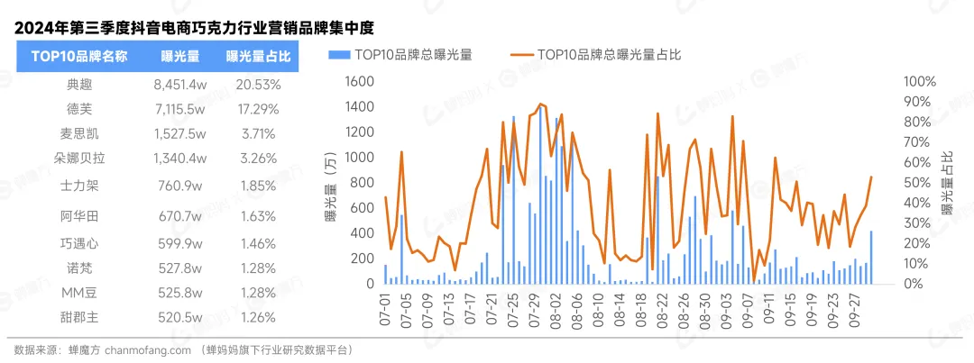 典趣、德芙主导巧克力市场曝光量,TOP10品牌占据市场绝大多数份额