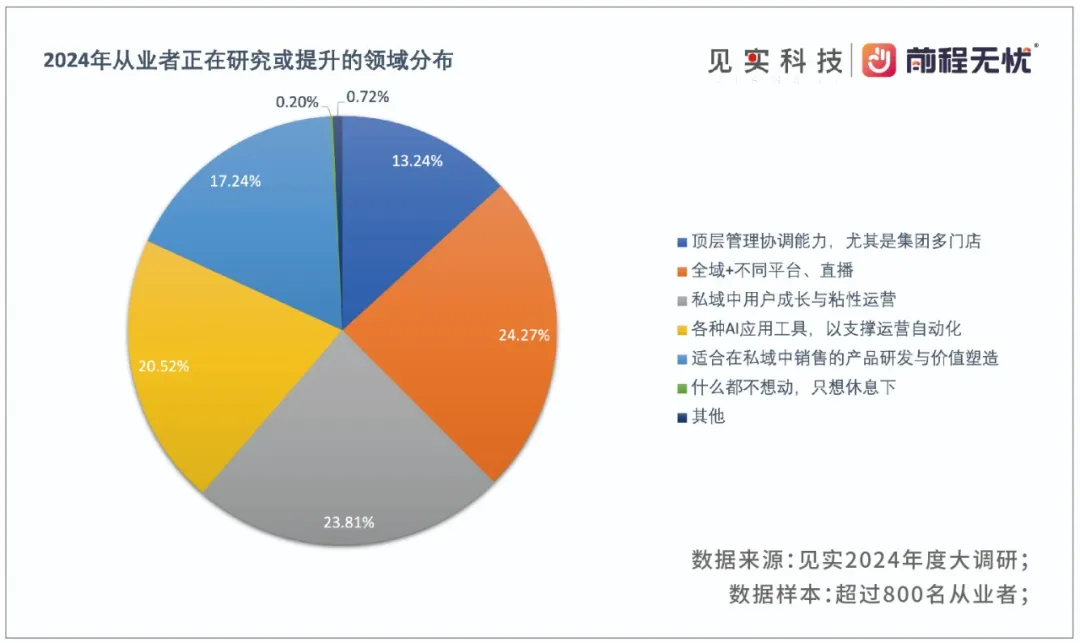 报告显示有超七成的受访者对私域及全域业务的未来持乐观态度,认为它将成为职业成长的坚实支柱。更重要的是,随着AI工具的兴起,私域正迎来新的技术变革,而这,可能会是下一波增长的核心驱动力。