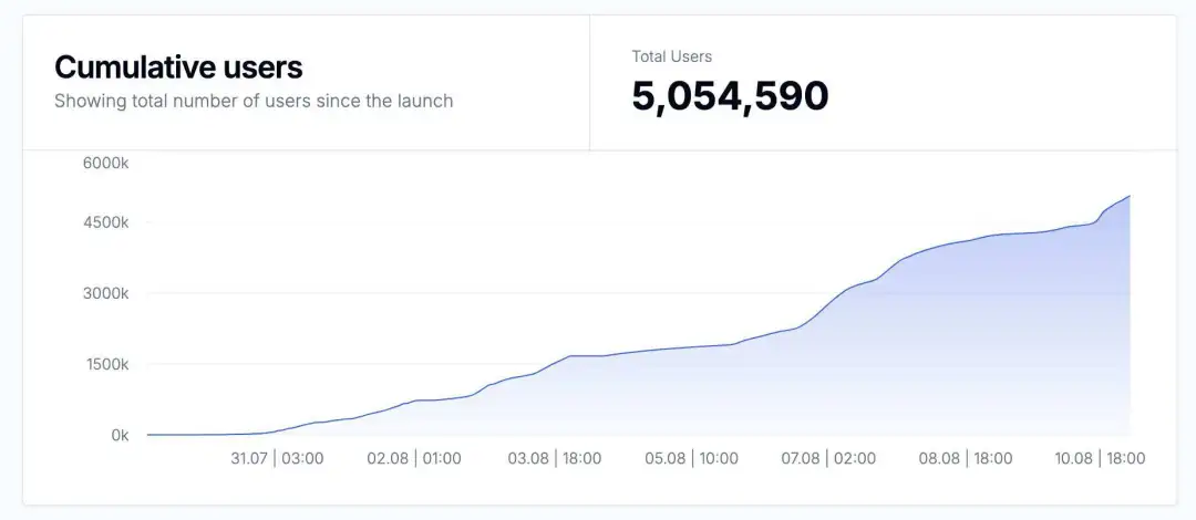 这个纯赚关注和流量的AI产品,在短时间内获得了500万用户。“Kyzo”在X上表示,这个项目让他每小时净赚4000美元,并在8小时内赚到了22000美元(折合人民币约16万元)。