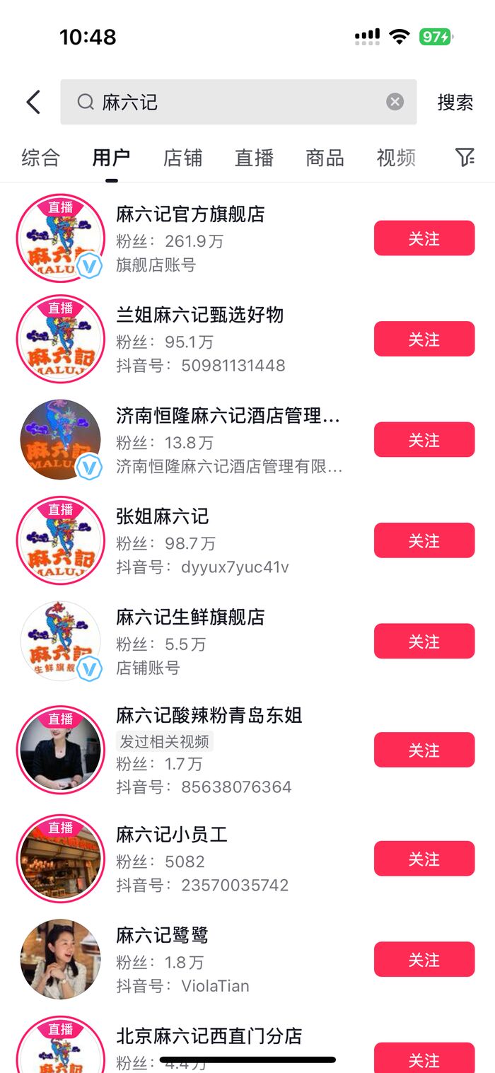1. 麻六记案例:在张兰、汪小菲账号封禁后,其线下门店账号开启直播带货销售食品,部分流量爆火,“麻六记官方旗舰店”粉丝超260万。