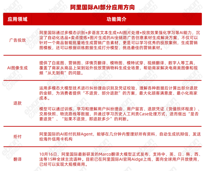 阿里国际AI针对退款场景做了专门的应用,运用多模态大模型技术进行纠纷理由识别及凭证校验,理解各种数据后计算出部分退款的金额,为消费者提供“不退货、部分退款”的方案,最大化顾客满意度、最小化商家成本;还可以通过训练,学习和理解用户纠纷理由、用户留言、退款凭证(货值损坏程度)、交易快照、物流路线等数据,并通过学习历史人工判责Case处理方式,进而做出“是否要退货”、“如果不退货,那退款多少”的判断。