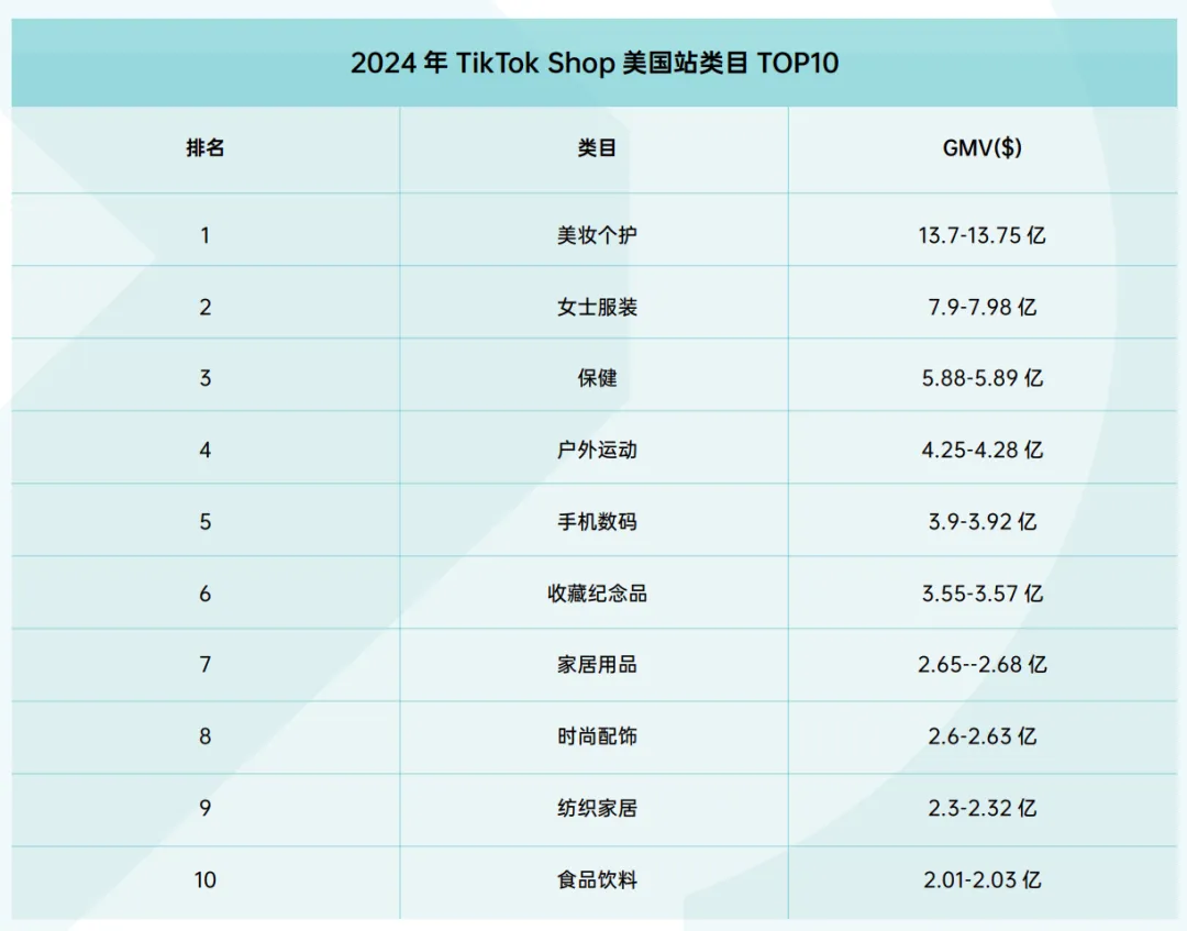 据TT123《2024 TikTok Shop年度调研报告》,2024年TikTok Shop美区热门类目中,美妆个护和女装是销售表现最好的两大类目。