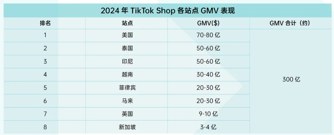 在“不卖就禁”法案的逆风面前,TikTok Shop美区2024全年GMV成绩依旧稳定各站点第一。