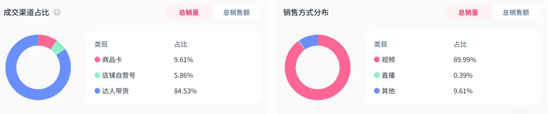 在出单方式上,达人带货和视频带货是品牌最主要的出单方式,占比分别为84.53%、89.99%。