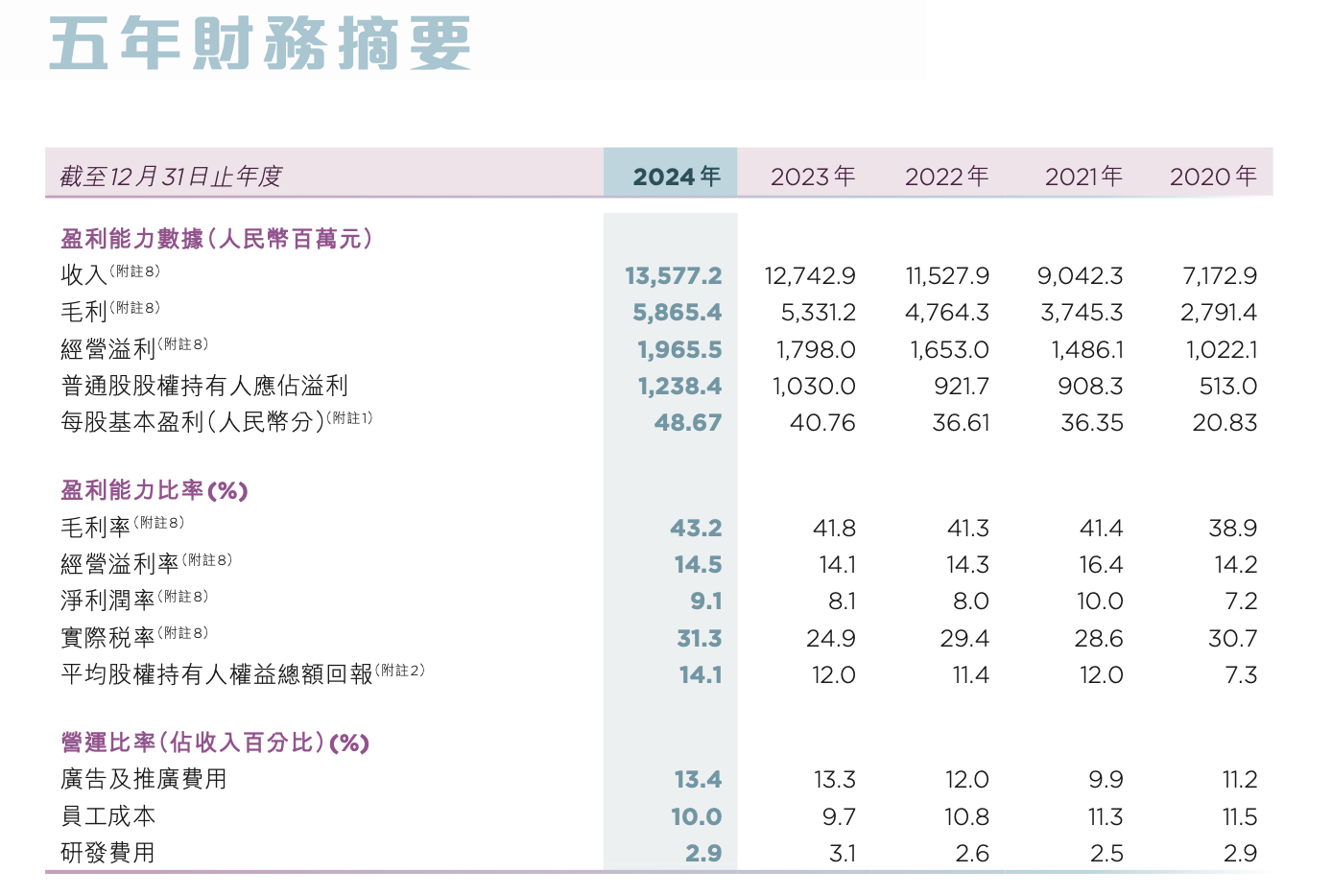 【亿邦原创】2024年,特步集团营收增加6.5% 至135.77亿元(2023年为127.43亿元);集团净利润达12.38亿元,较2023年的10.3亿元增长20.2%;经营利润同比增长9.3%至19.66亿元。