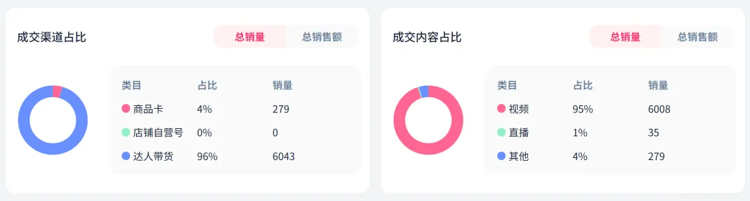 FastMoss数据显示,达人带货是目前该玩具的主要出单形式,近28天,达人带货贡献了96%产品销量,此外,短视频作为主要的内容创作形式,销量占比为95%,带货量为6008单。