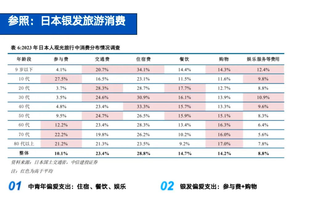 此外,从日本2023年按年龄划分的旅游消费结构来看: