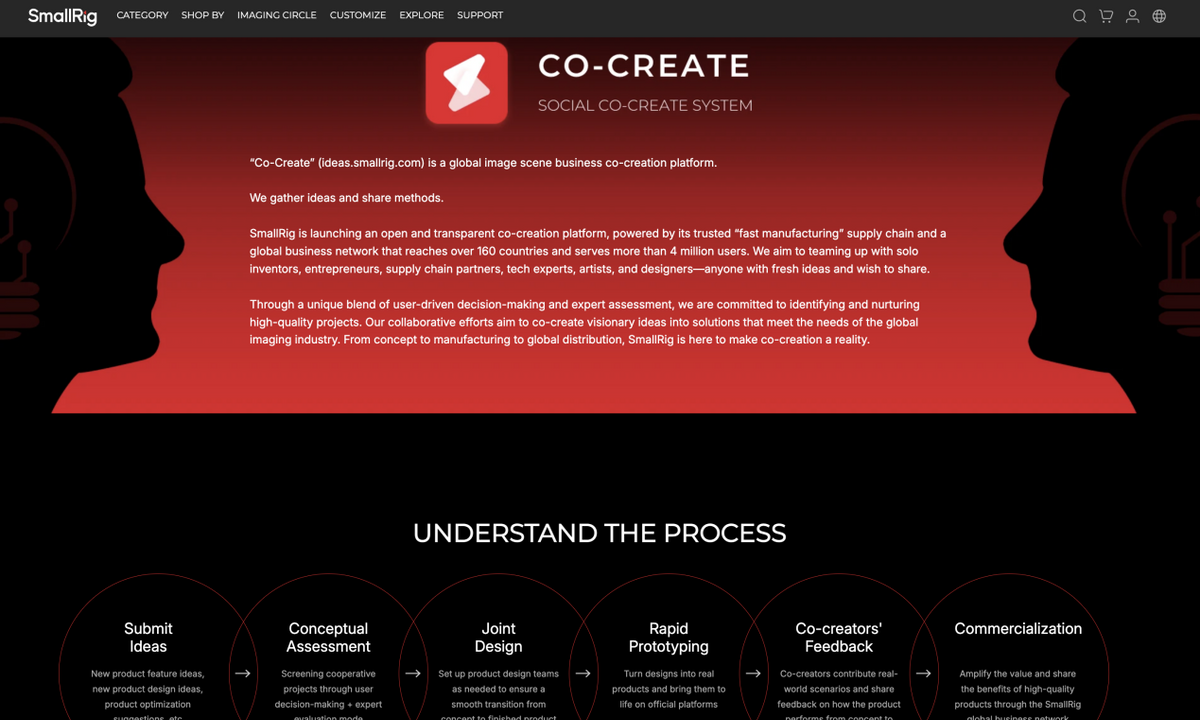 具体而言,开放场景指与共创者共享“影像场景”这一全民市场;开放市场是开放私域独立站和公域渠道,为创新产品提供从私域测试到规模化销售的全链路支持,打造商业验证模型;开放资源则是制造能力的全面开放,提供柔性供应链支持,降低生产门槛。由此快速将各⽅需求进⾏产品转化和商业转化,最终推向市场。