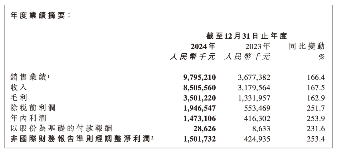 据财报数据显示,老铺黄金2024年实现销售业绩98亿元(含税),同比增长166%;实现净利润14.7亿元,同比增长254%;毛利率基本稳定在41.2%。