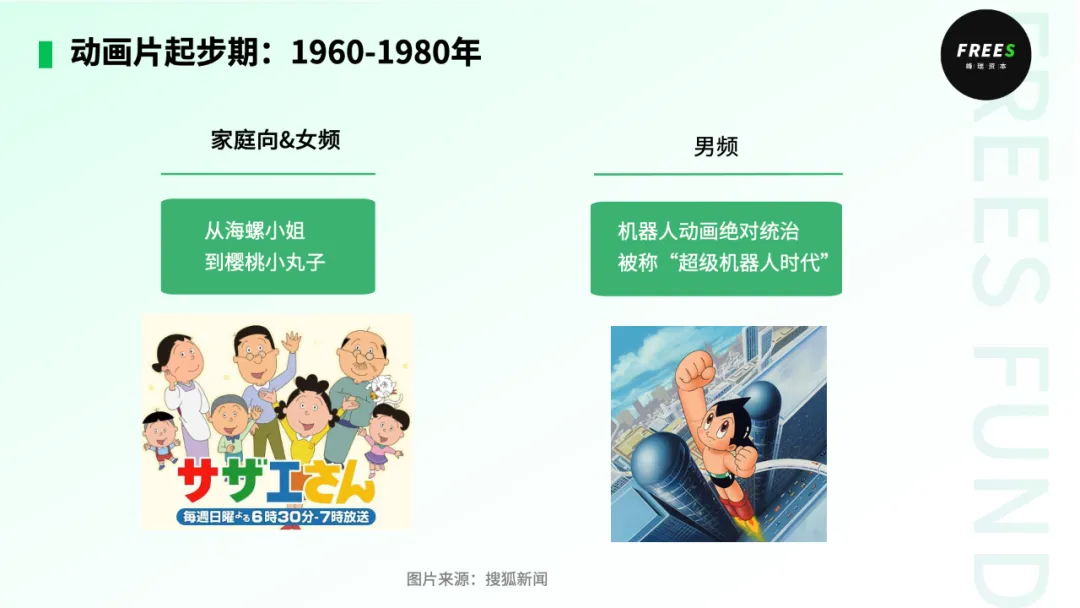 类似的,日本的动漫行业也经历了螺旋式上升的发展过程。20世纪60年代到80年代,日本动画行业完成了在“讲故事”层面的跃迁,实现了从家庭片、机器人主题片转向多类型IP孵化的范式转换。